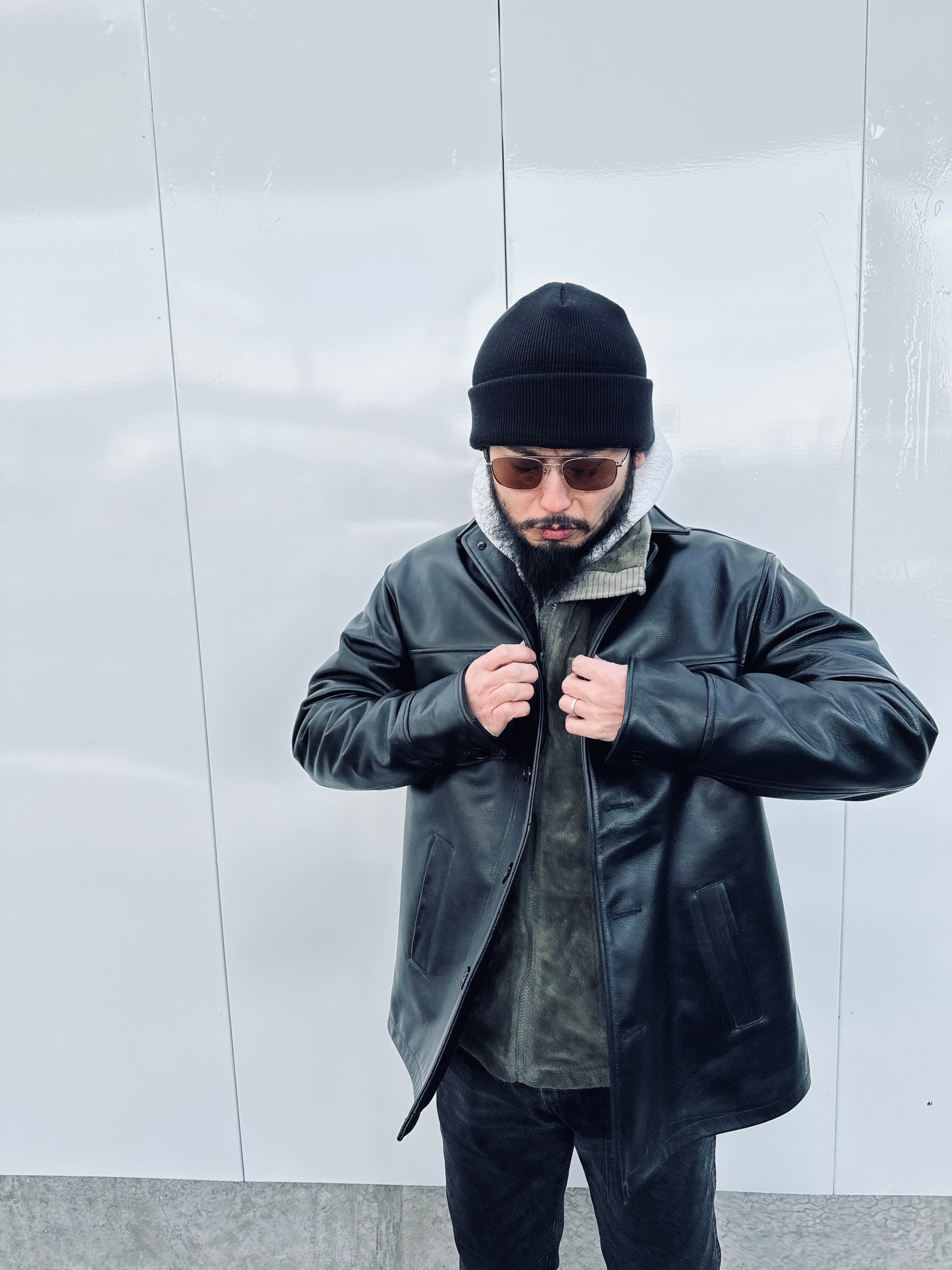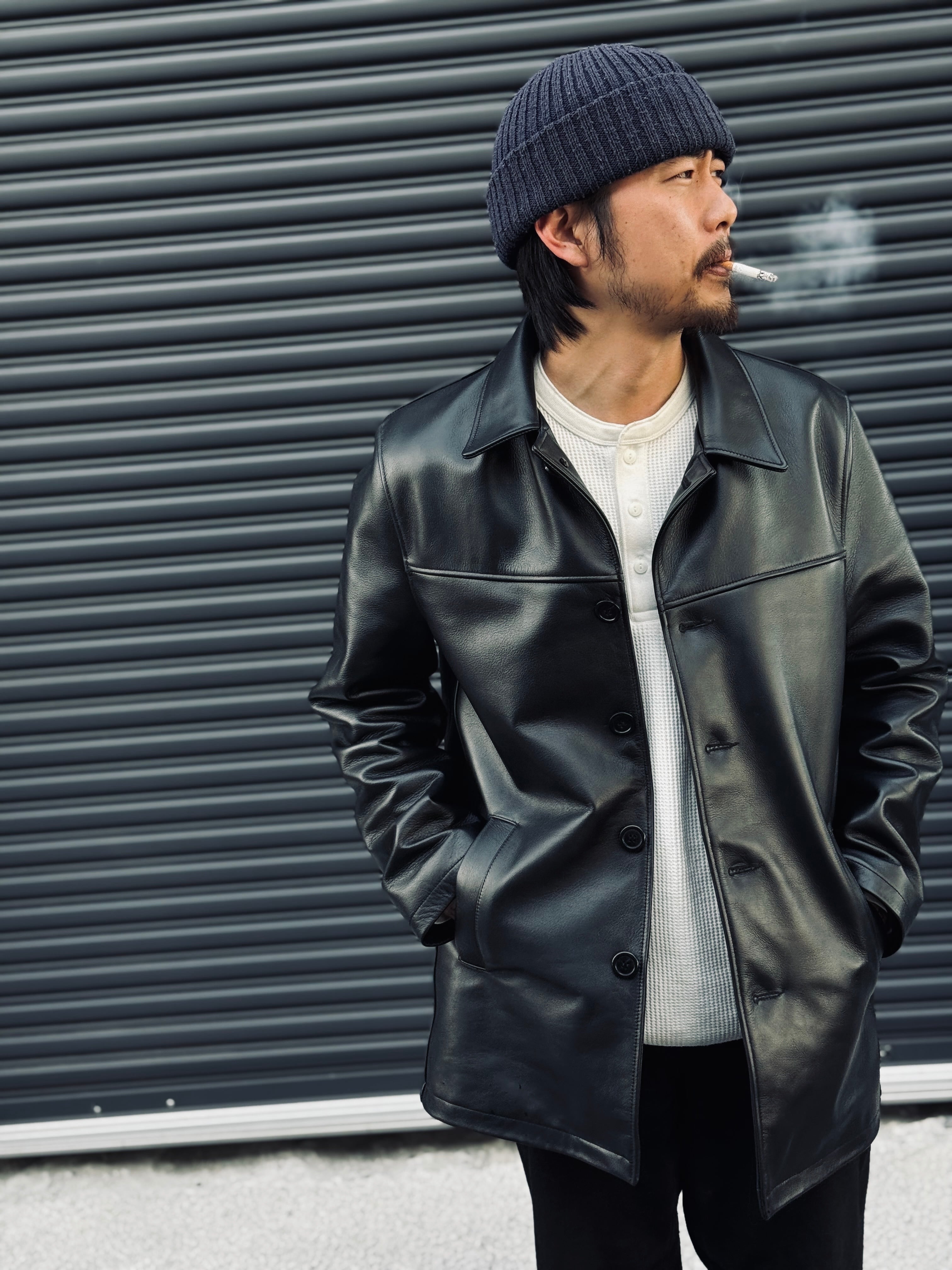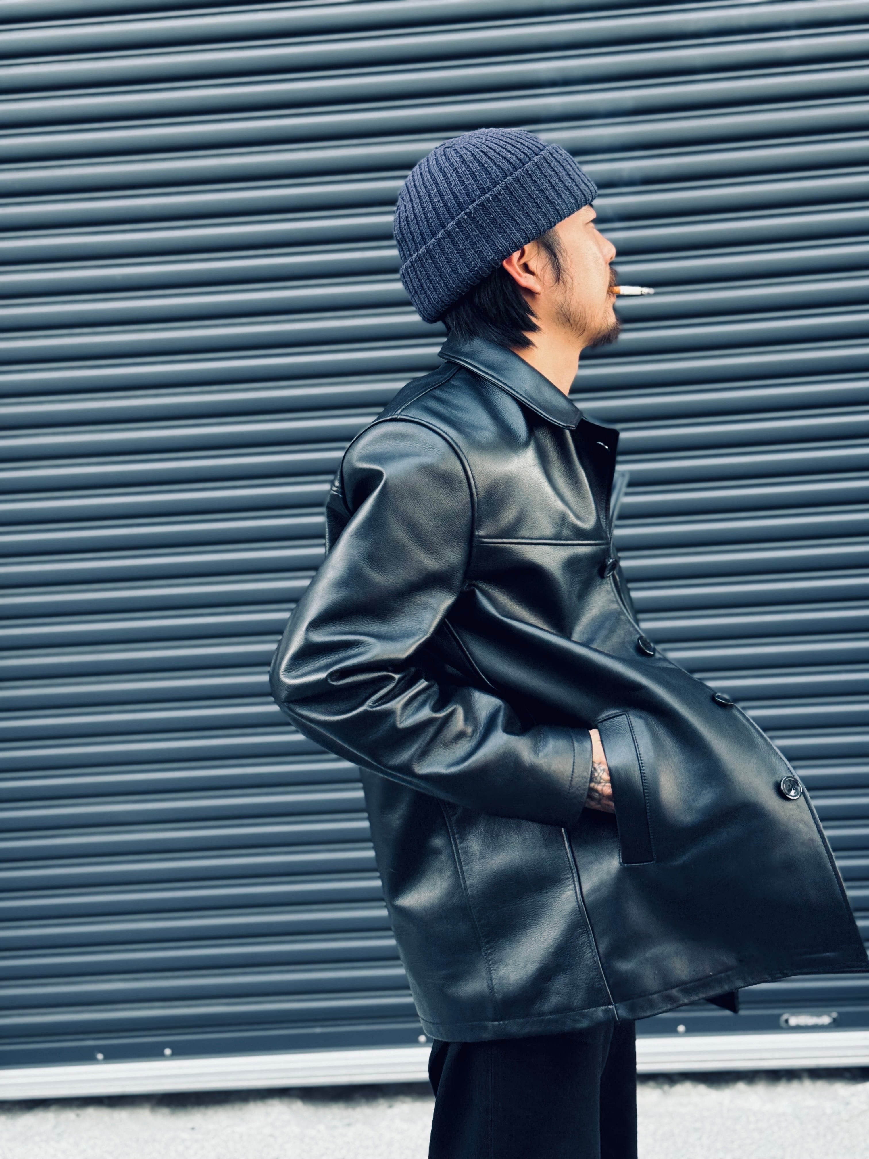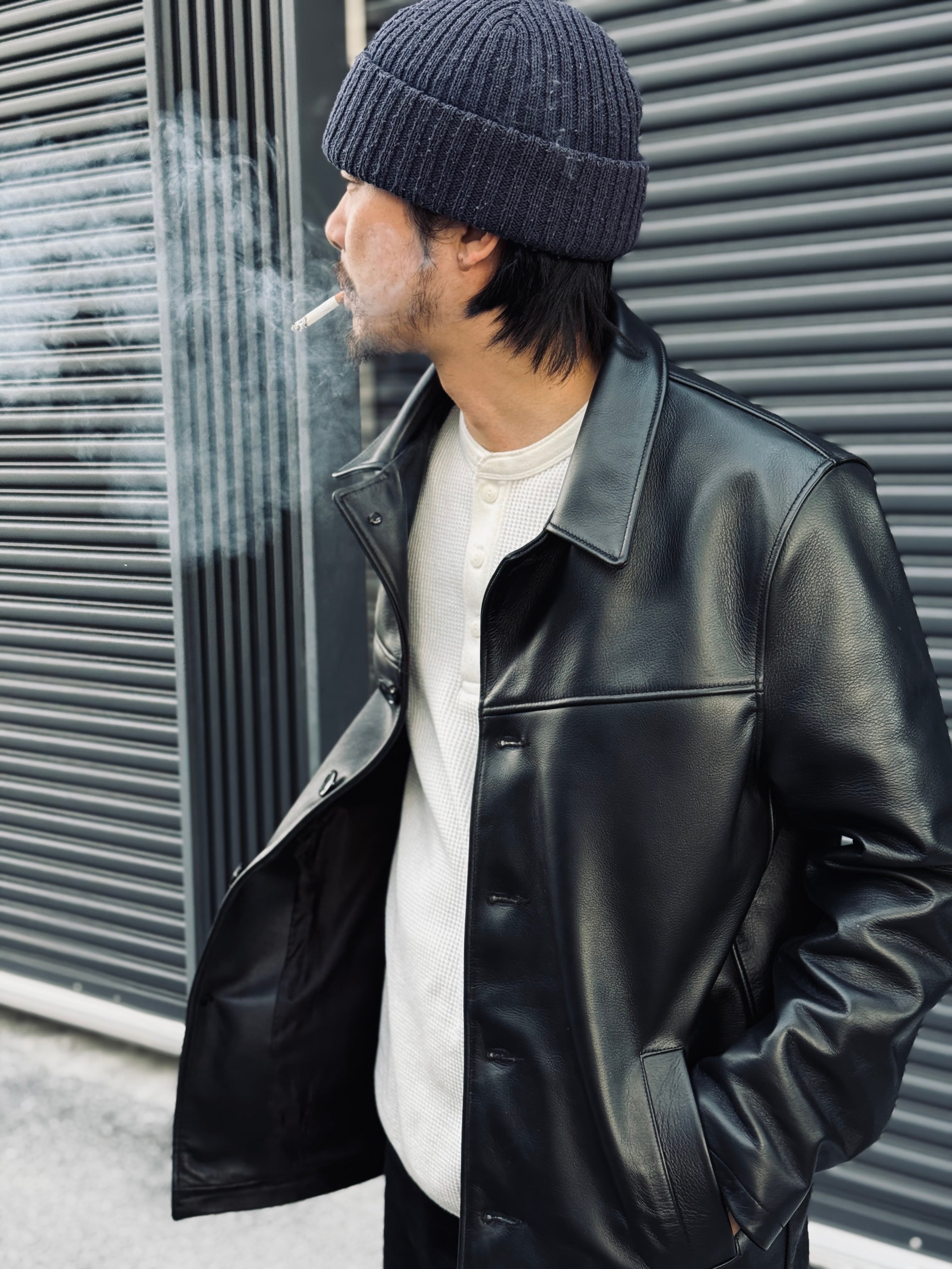 60年代ぐらいのギャングさんが着てたレザージャケットが作りたく、試行錯誤しながらようやく完成いたしました。